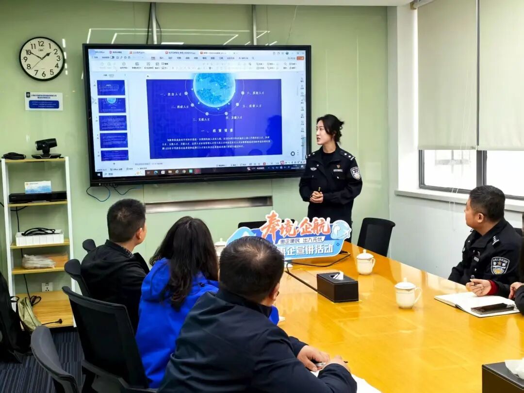 上海英科实业有限公司的对外销售部成为了此次走访的“主角”,部门总监杨女士是一名资深的“老外贸”。“以前邀请海外技术团队来沪指导,签证办理周期是个大难题。”宣介会现场,杨女士向民警表示,通过奉贤出入境管理支队“上门送政策”了解到电子口岸签证政策后,公司的商务模式一定程度上将发生改变。在奉贤出入境管理支队的指导下,公司依托“企业直邀+全程网办”模式,直接为海外的商务伙伴办妥电子口岸签证,实现“即时申请、即刻来华”的速通体验。