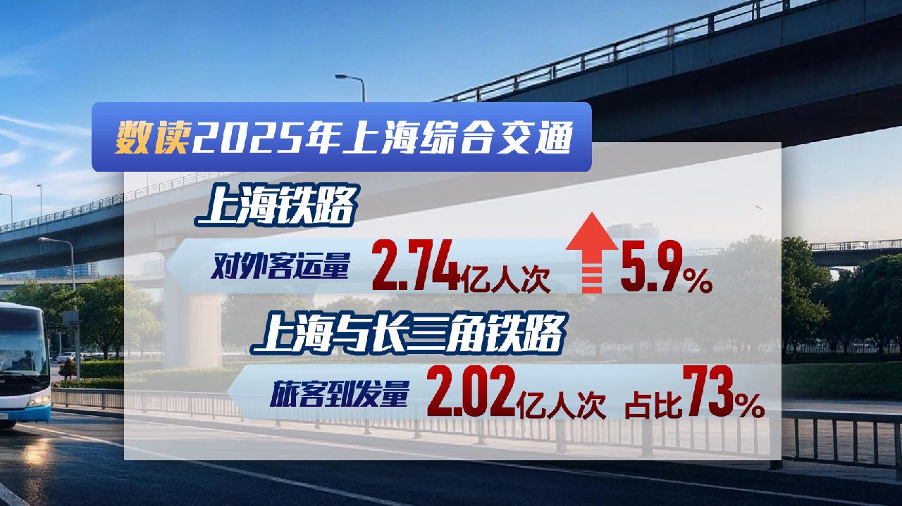 与此同时,铁路运输服务水平稳步提升。2025年,上海铁路对外客运量2.74亿人次,同比增长5.9%。其中,上海与长三角的铁路旅客到发量达2.02亿人次,占比73%。