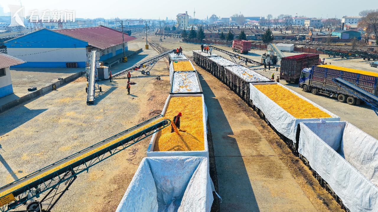 3月31日,在黑龙江省哈尔滨市呼兰火车站,一列编组55辆满载3300吨的粮食班列驶向大连金港,这是中国铁路哈尔滨局集团有限公司服务“北粮南运”开行的粮食货运班列,年初以来,哈铁累计发运粮食915万吨,同比增长94%。