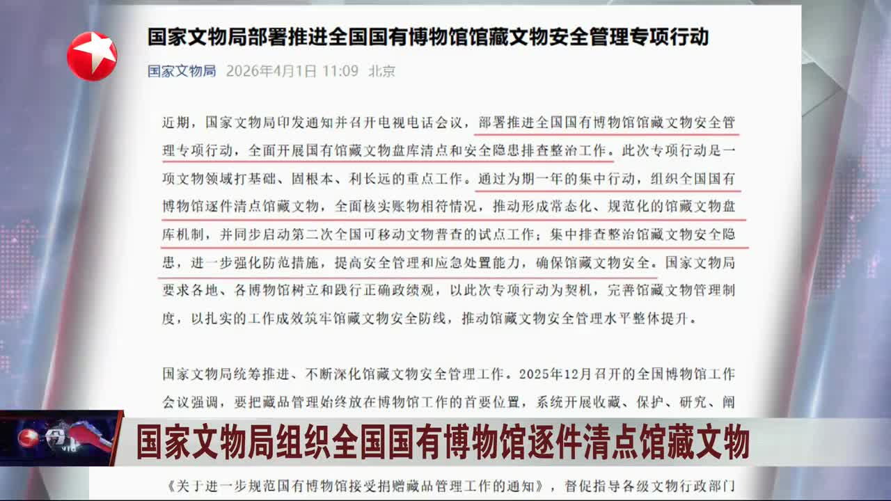 全国国有馆藏的文物,将迎来一场彻底的盘家底!把库房里那些字画古籍拿出来,有一件算一件,数清楚、看明白、对好账。近期,国家文物局印发通知,部署推进这项文物安全管理专项行动,计划通过为期一年的集中行动,全面核实账物相符情况,推动规范化的馆藏文物盘库机制。