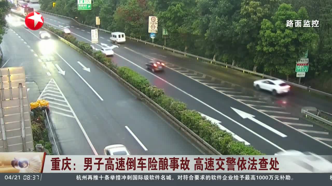 重庆:男子高速倒车险酿事故 高速交警依法查处