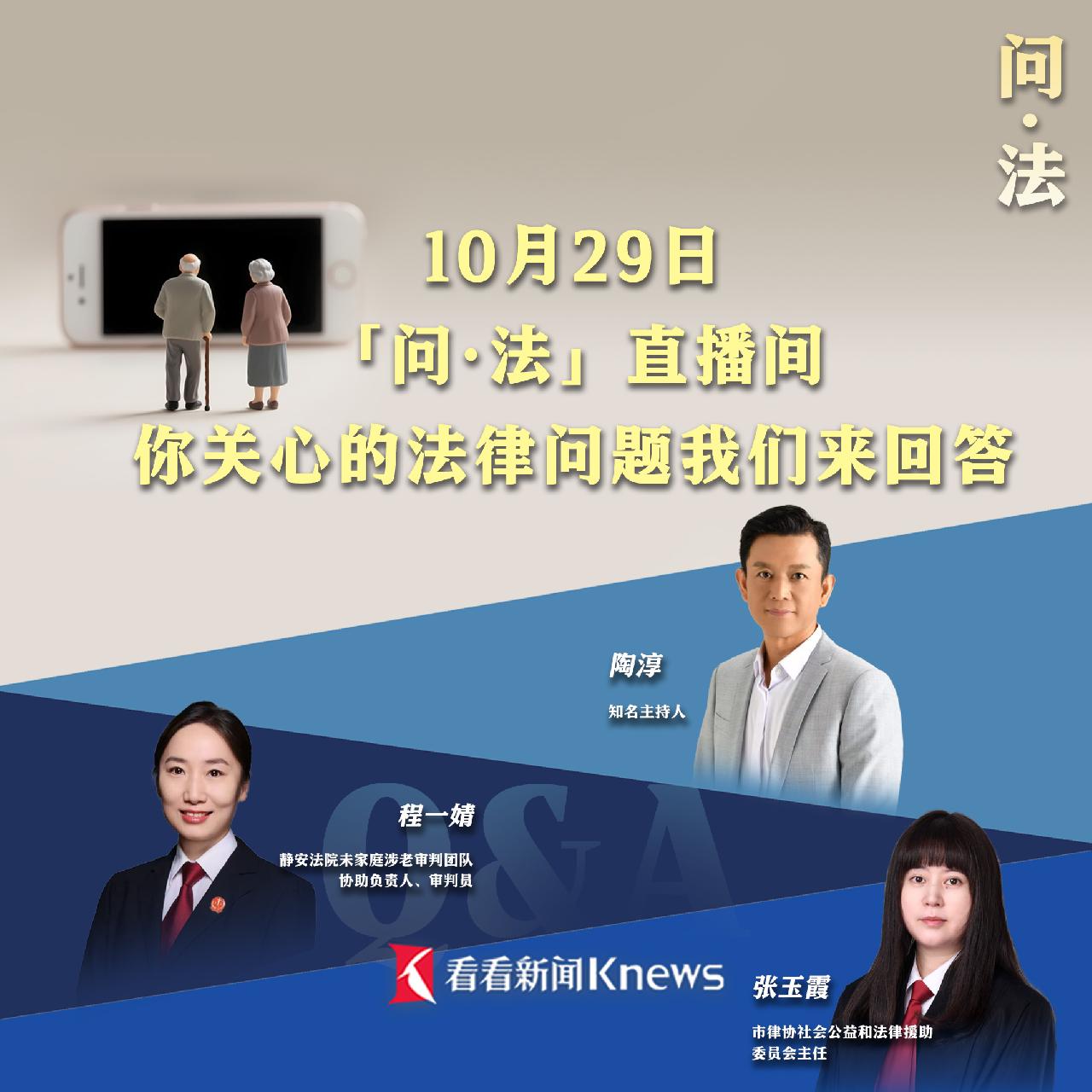 10月29日晚19:30,锁定看看新闻、案件聚焦、陶淳说法的视频号、抖音号,《问·法》直播间解答你的疑问!