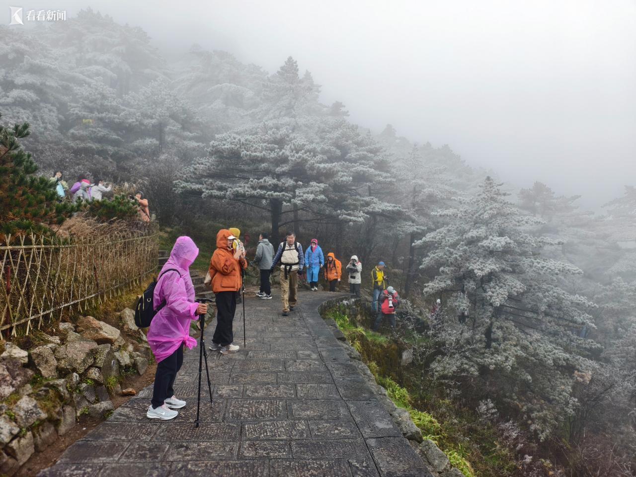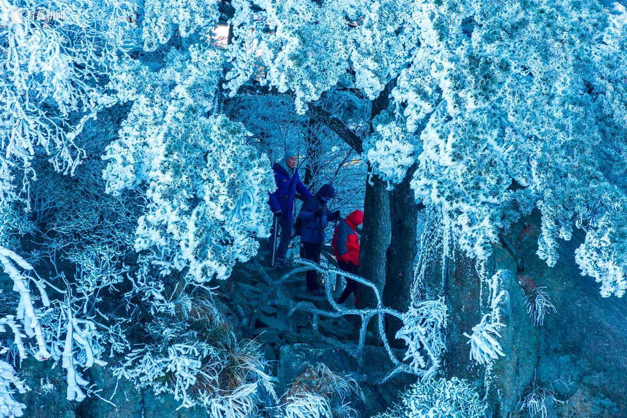 11月17日,黄山景区出现雾凇景观。