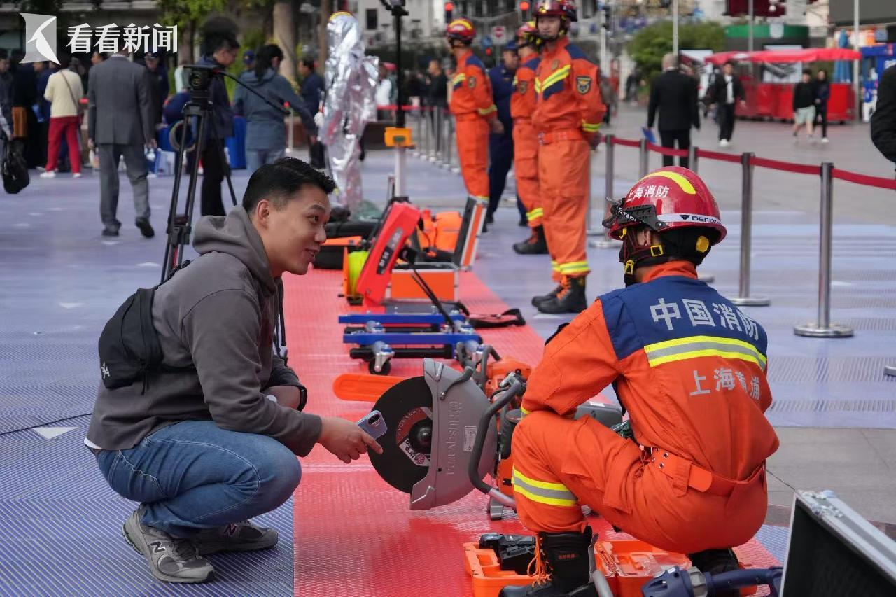 普陀区消防救援支队在莫干山路的m50创意园内,开启了一场热闹的消防科普市集,市民们或驻足打卡、或游览体验,别开生面的消防体验令人耳目一新。