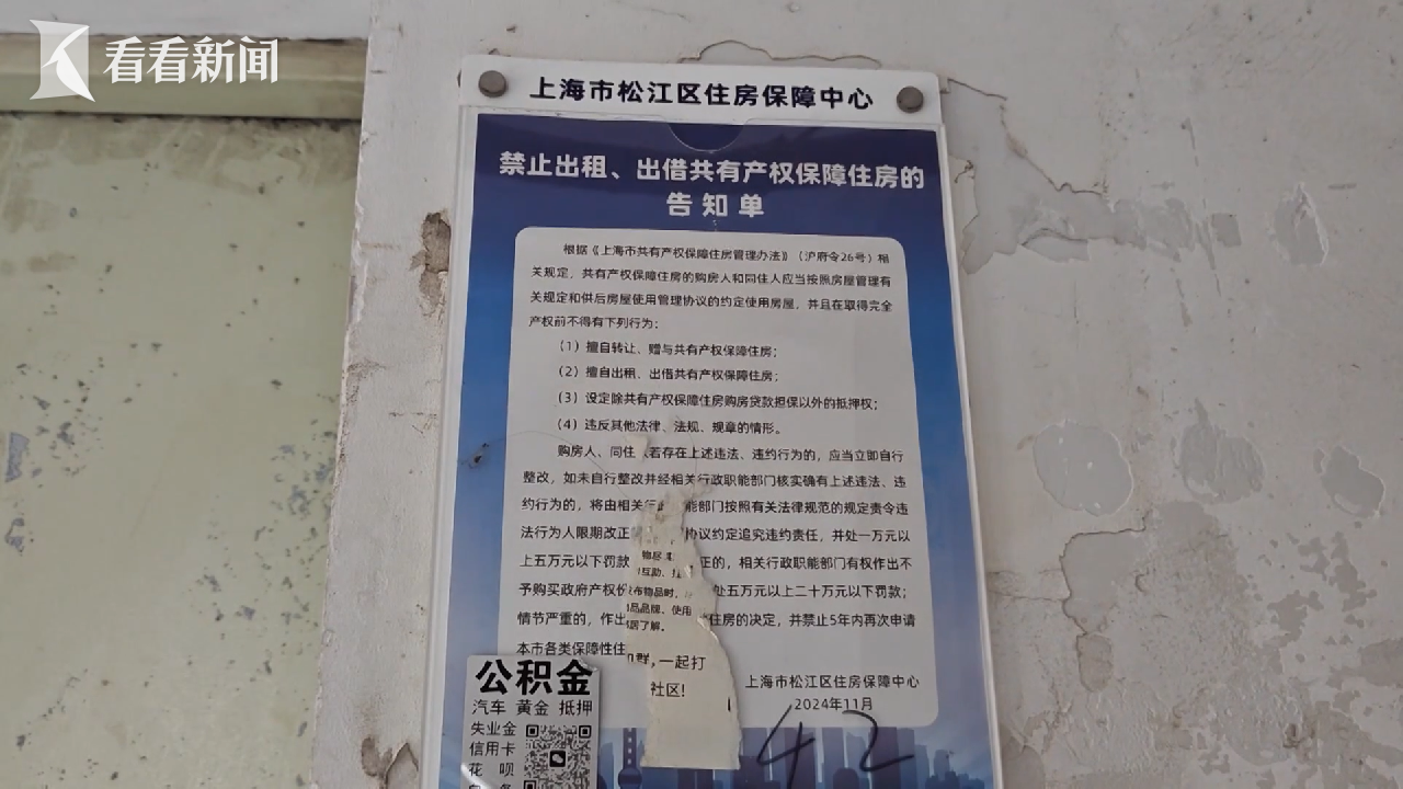 据悉,松江区住房保障中心接报后就开具了整改通知单,要求租户在本月25日前搬离。