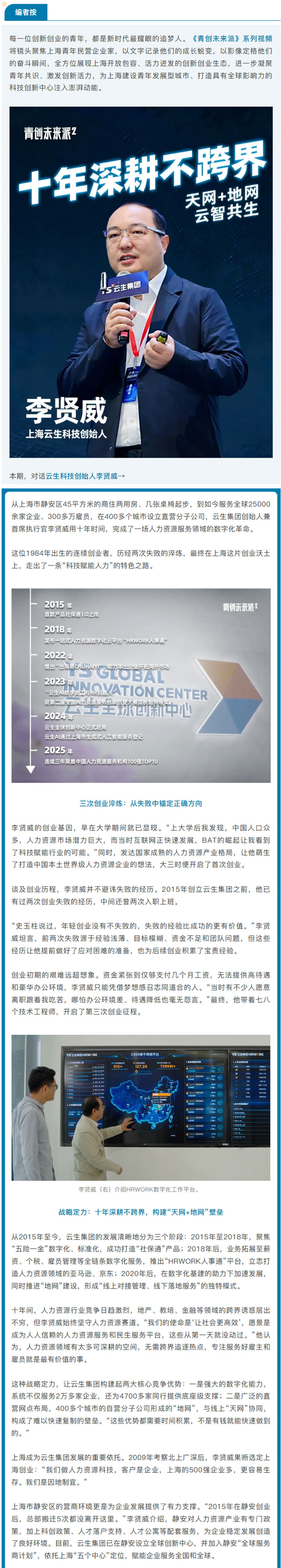 青创未来派 | 李贤威:十年磨一剑,打造人力资源服务的“云上引擎”
