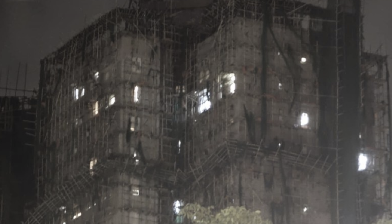 今日(29日)凌晨时分,现场救援人员通宵在涉事3幢大厦内进行调查,并用临时照明系统照明,高层多个单位市内有灯光亮起。救援人员开动无人机,在火宅现场上空拍摄。