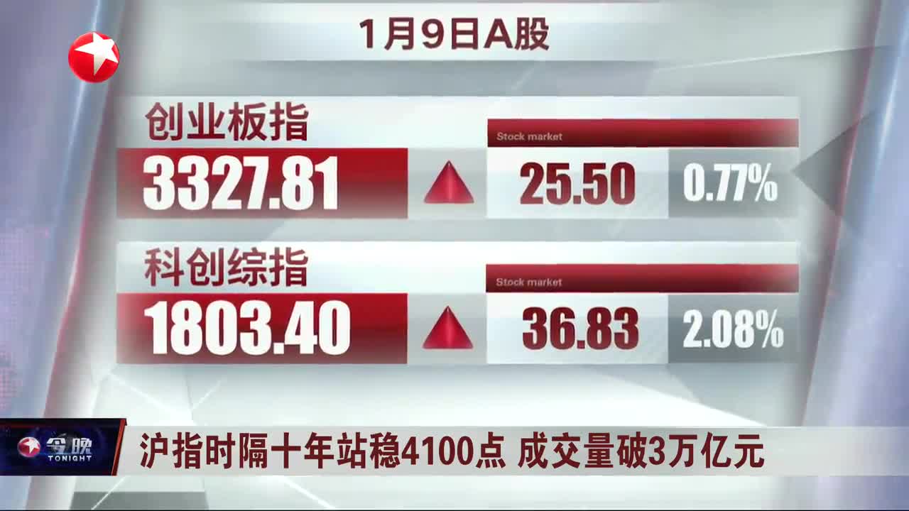 沪指时隔十年站稳4100点 成交量破3万亿元