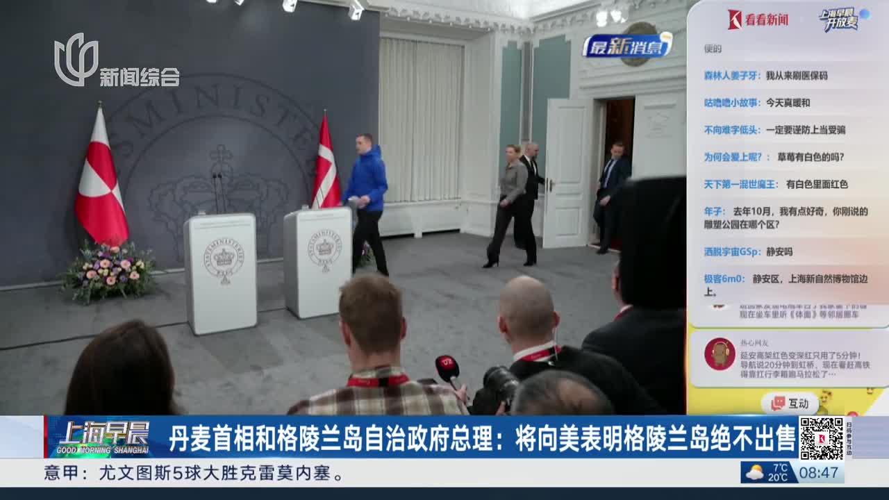 丹麦首相弗雷泽里克森和格陵兰岛自治政府总理延斯-弗雷德里克·尼尔森13日在哥本哈根举行联合记者会。尼尔森在联合记者会上重申“格陵兰岛不出售”的立场。他表示,格陵兰岛是丹麦王国的一部分,在王国内享有自治权。格陵兰岛“不会被美国拥有、不会由美国统治、也不会成为美国的一部分”。