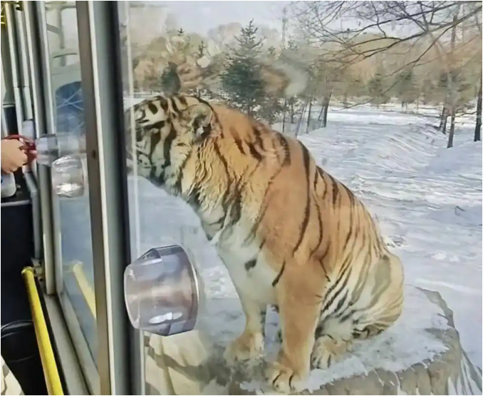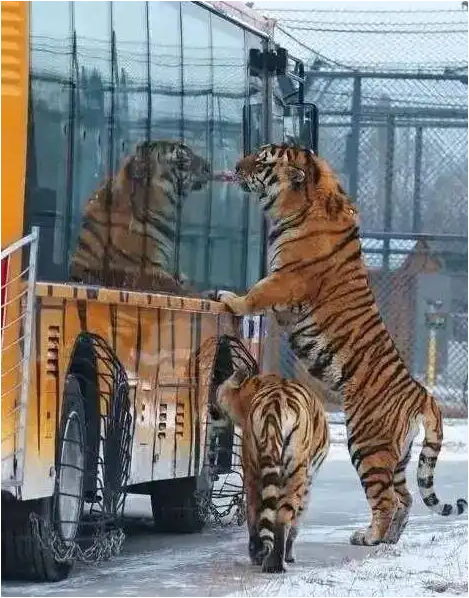 黑龙江东北虎林园坐落于松花江北岸,是世界上最大的东北虎人工饲养繁育基地,目前生活着300多只不同年龄的东北虎,其中有几十只生活在散放区。乘坐“惊险车”向东北虎投喂,是该园的热门活动。园方以每块20元的价格向游客出售备好的生牛肉块,购买不限量。由于购买的肉块都可以投喂,这似乎意味着投喂也不限量。
