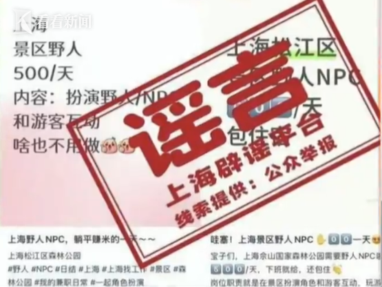 近日,有网友发帖称,上海佘山国家森林公园招聘野人NPC与游客互动,报酬高达每天500元。网友们纷纷响应,表示要组团去应聘。