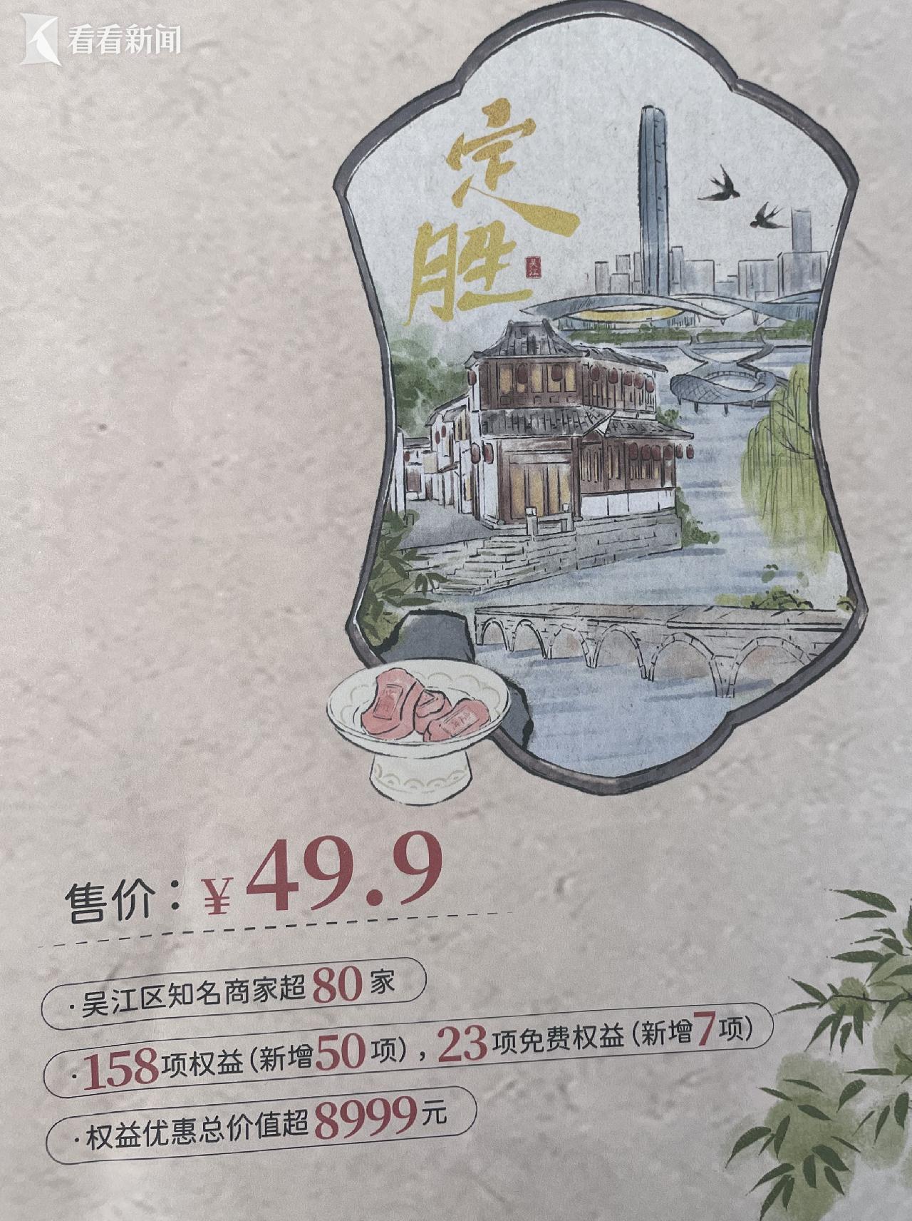 紧邻上海青浦的吴江深耕文旅场景与产品供给,把上海作为跨城推介的核心阵地,重点介绍其全新上线的文旅消费“定胜卡”2.0版本。该卡整合了80余家商户,提供共计158项消费权益,包括23项免费权益,覆盖吃、住、行、游、购、娱等场景,售价不到50元,能享受的权益价值超8999元。