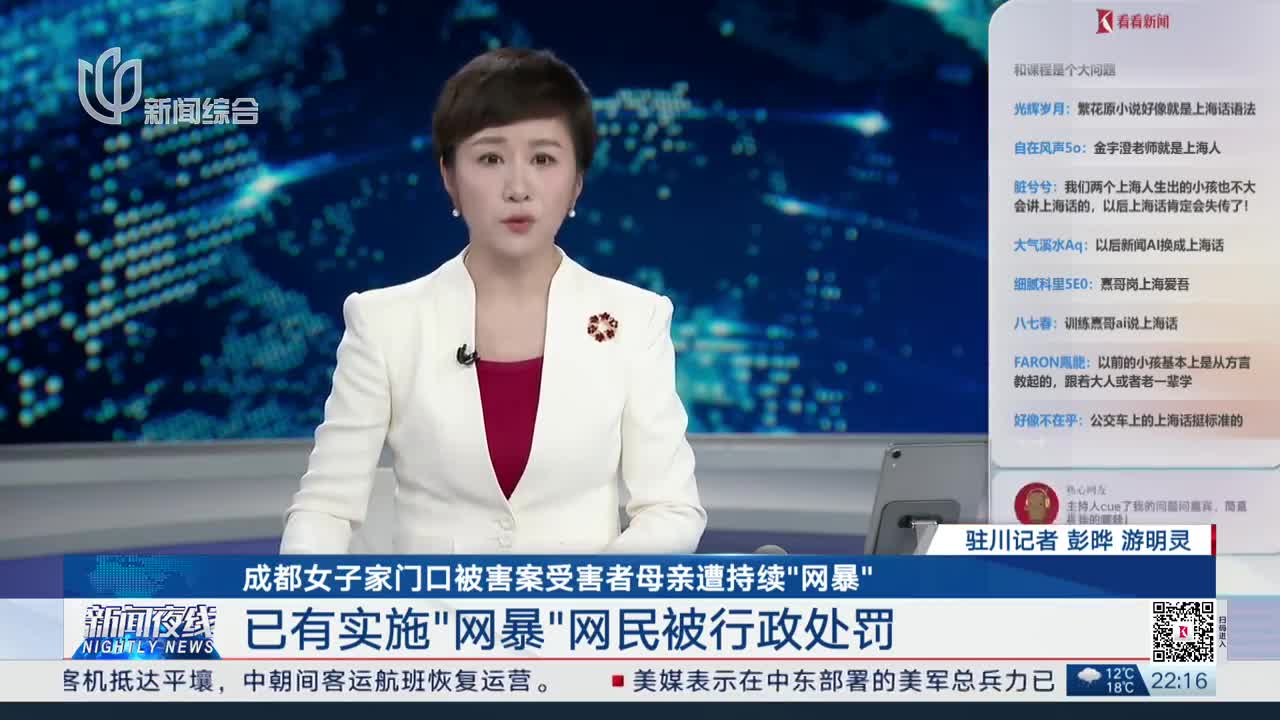 成都女子家门口被害案受害者母亲遭持续“网暴”