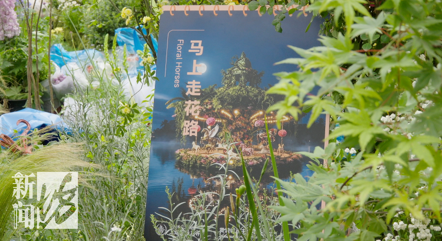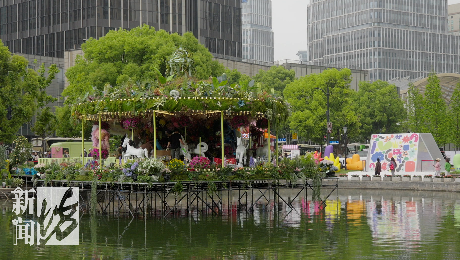 它以经典旋转木马为原型,复刻了上海初代木马的温情模样,五匹繁花骏马错落排布,通体被鲜妍花簇与青翠绿植温柔包裹,氛围感拉满。