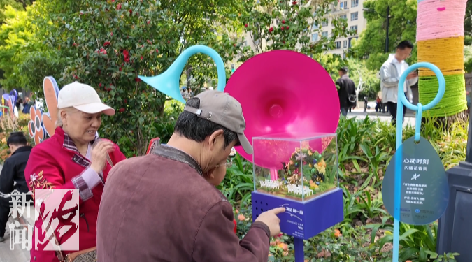 黄陂南路与自忠路的交叉口,“爱新生”主题花园静静绽放。粉色圆形空间内,五枚光盘装置错落悬挂,轻轻触发一枚光盘,便能听见在红房子医院录制的新生儿啼哭与心跳声,而整个圆形空间,正是对妈妈子宫的温柔模拟。