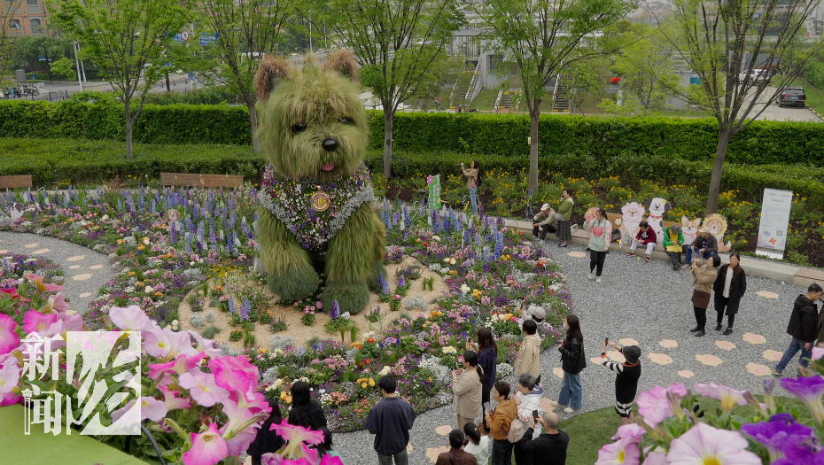 今天,花漾萌宠园里,带着自家狗狗慕名前来打卡的市民游客络绎不绝。再加上一旁的花艺展览和市集,让万象天地商圈的客流量一下子增加了好几成。