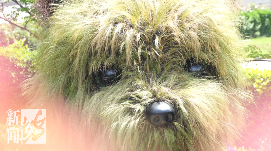 设计团队介绍,苏河湾中心绿地这片区域本就是宠物活动场所,造景灵感正来自一次现场踏勘时偶遇的一只毛发蓬松的西高地。为了打造出蓬松柔软的毛绒质感,团队在草种选择上费尽心思,最终选定了细叶针毛——这种观赏草特有的质感,让雕塑呈现出仿佛真实犬类毛发般的蓬松与柔软。