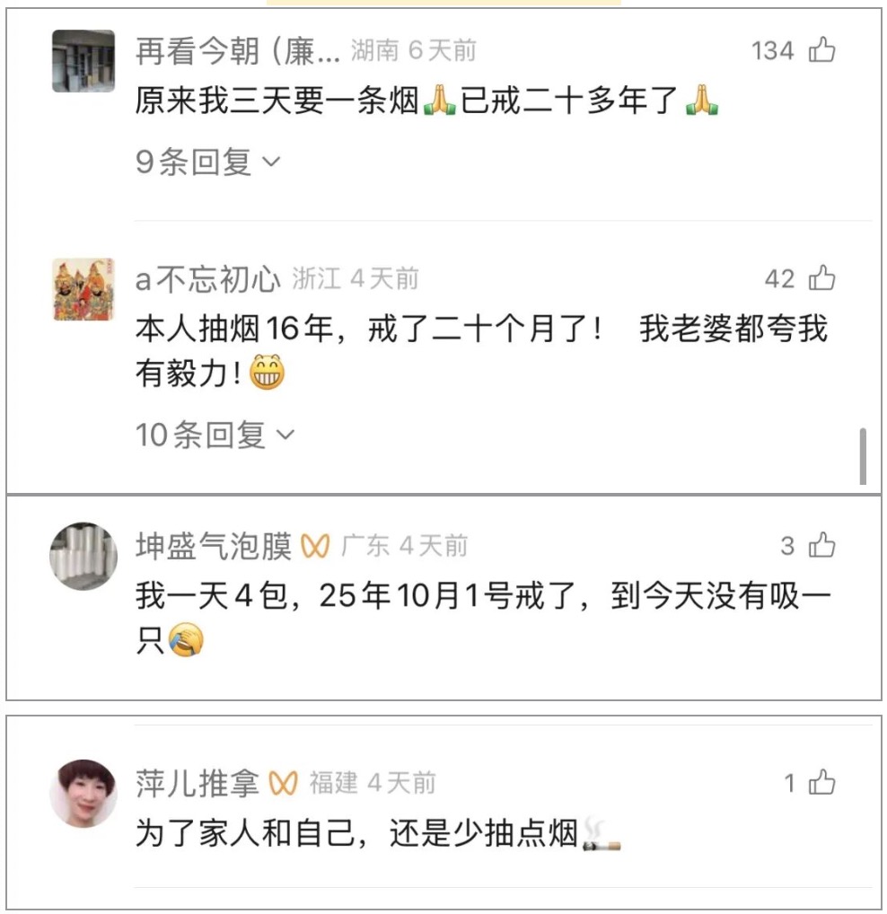 还有一些戒烟成功的网友