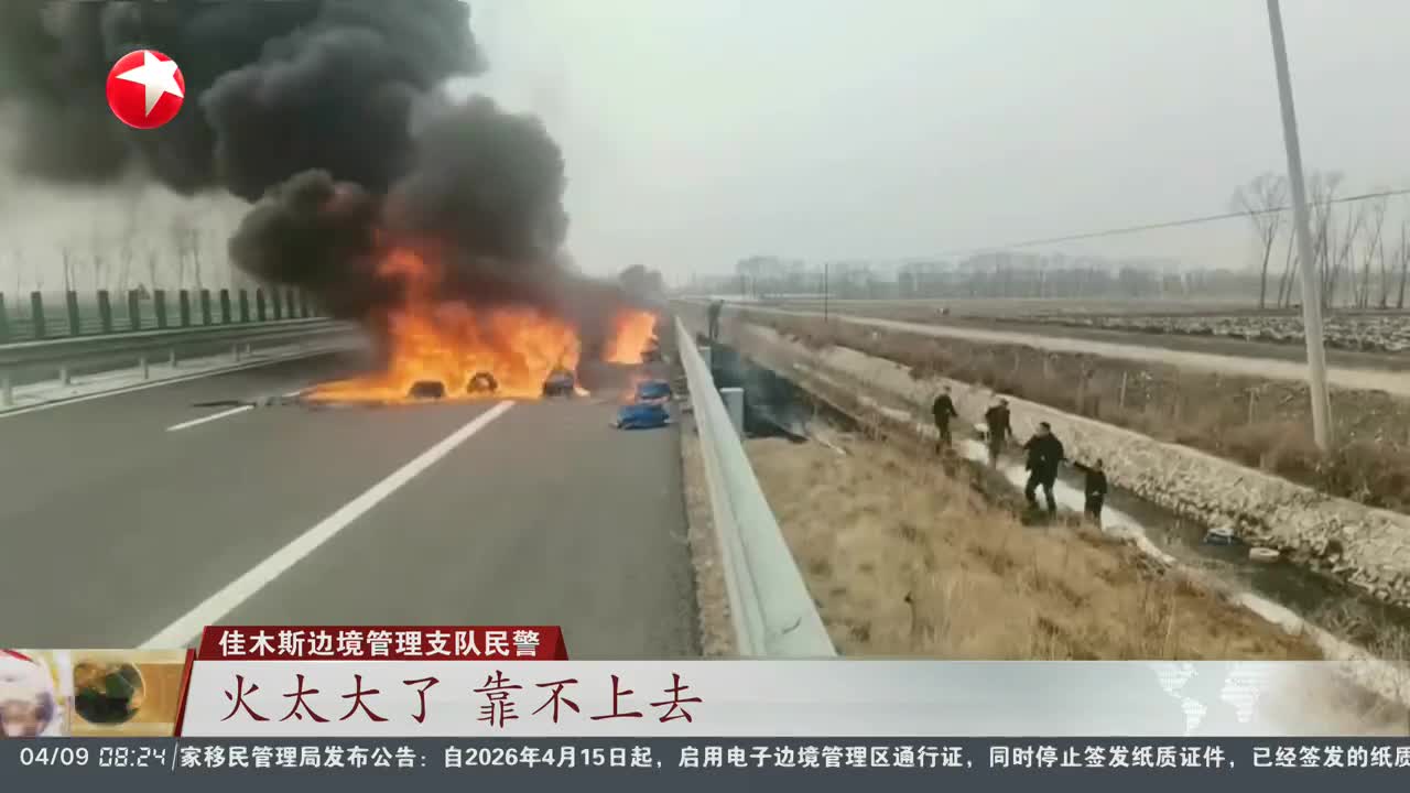 黑龙江:民警出差途中发现货车突燃 众人接力紧急扑救