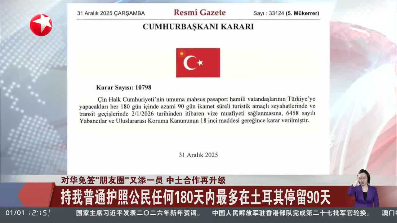 对华免签“朋友圈”又添一员 中土合作再升级
