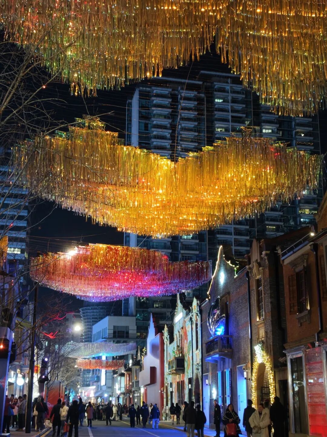 这个春节,不妨漫步至茂名北路,邂逅《天河奔马》镭射流苏光影装置,感受“福禄寿禧财”五福光影随昼夜流转的吉祥意趣,遇见《新岁》光影装置,在钻石般璀璨的光芒中定格新春瞬间。