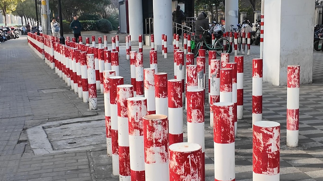 记者调查 地铁口防止乱停车 密布“梅花桩”一挡了之?