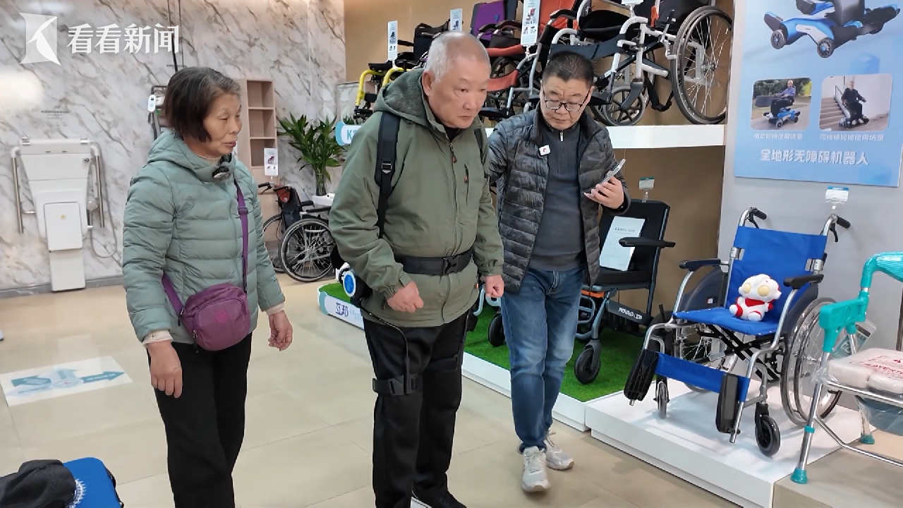 几分钟后,邵老伯试穿上了这款心心念念的助行机器人,有了外部助力,抬腿轻松了不少。