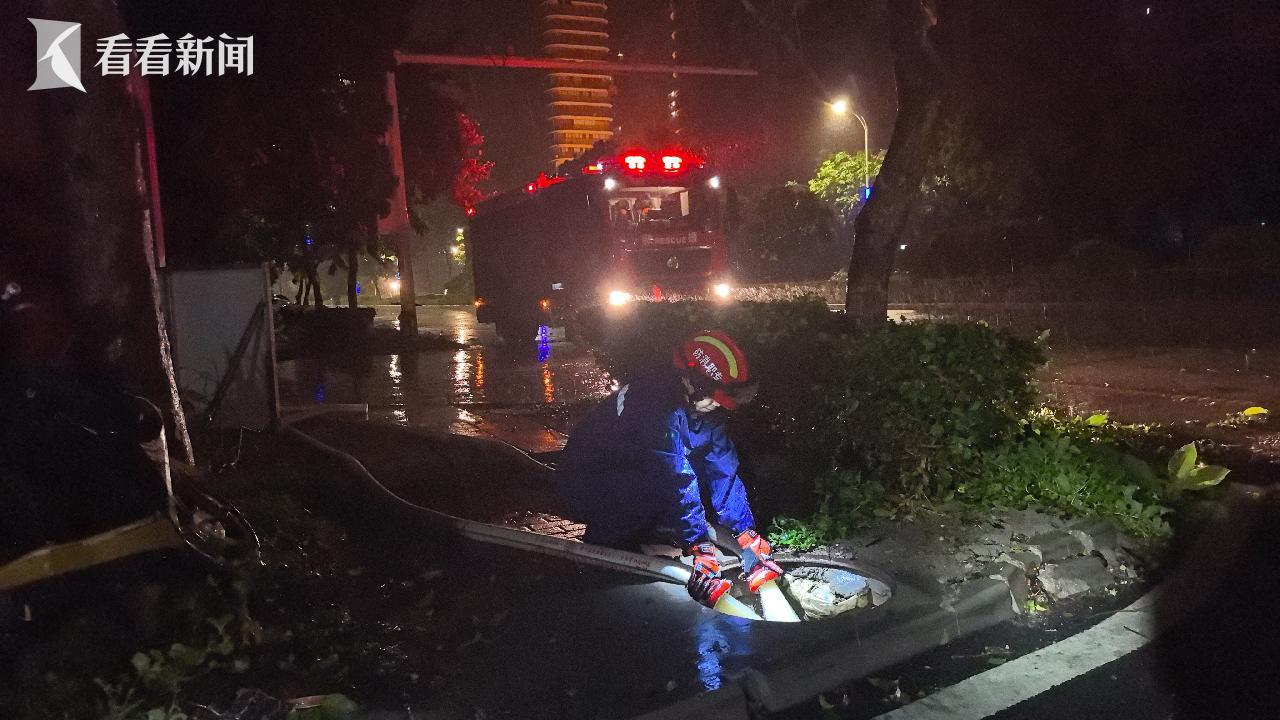 6月14日凌晨,东方市佳名小区由于地势低洼发生严重内涝,积水最深处没过消防员的腰部,内涝面积达1万平方米,部分一楼住户家中进水,小区道路中断。凌晨两点多,当地消防救援接警后,立即调派救援力量携带手抬机动泵、照明及清障装备赶赴现场。消防员冒雨在积水最深区域架设水泵,持续强排,经过近10个小时的通宵作业,主干道积水显著下降。发稿前,队员仍在全力抽排剩余积水。