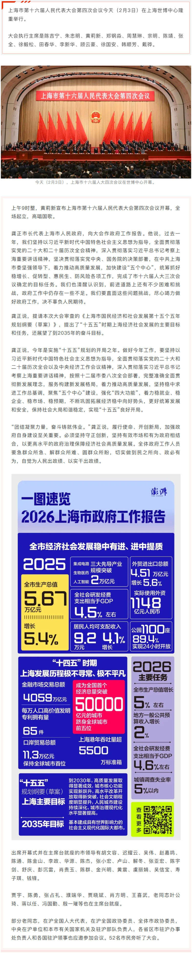 上海市十六届人大四次会议开幕,一图速览市政府工作报告→