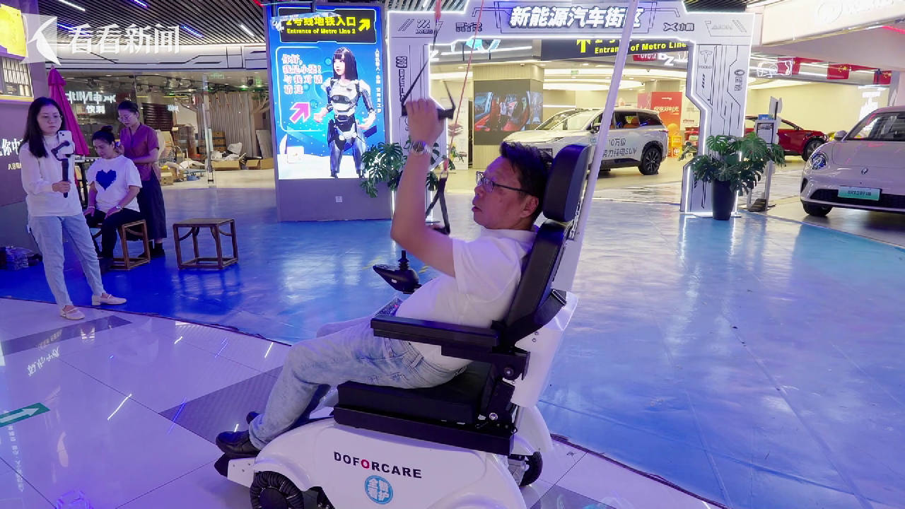 在市中心这家商场的中庭,一场“乐无忧小屋”的快闪活动正在举行,市民可以近距离体验各类康复辅具。记者体验的这款康复护理机器人,一键按下遥控,便可灵活完成站立、躺坐、移位。好奇的市民都在围观它到底能有多大的本领。