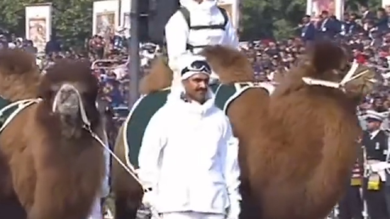 莫迪和欧盟主席观摩 印度阅兵首次派"动物方队"