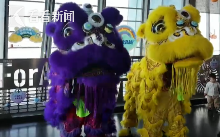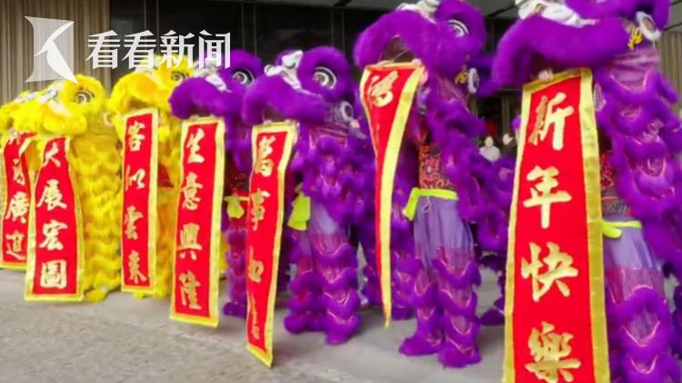 一早,在上海中心门口,锣鼓声声,八狮共舞,黄紫相映的雄狮,用一场精神抖擞的表演,为游客们拉开了活力满满的新年序幕。