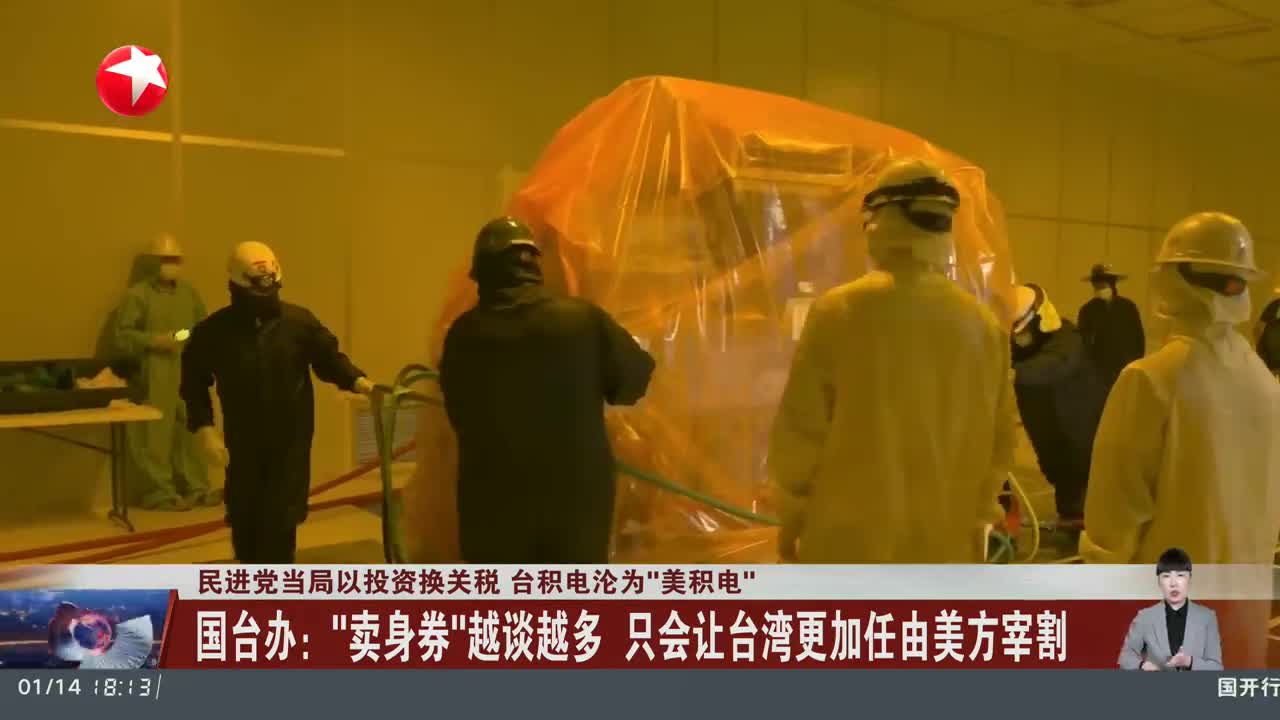 民进党当局以投资换关税 台积电沦为“美积电” 国台办:“卖身券”越谈越多 只会让台湾更加任由美方宰割