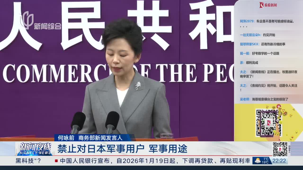 高市要求撤回“对日两用物项出口管制” 中方不予接受