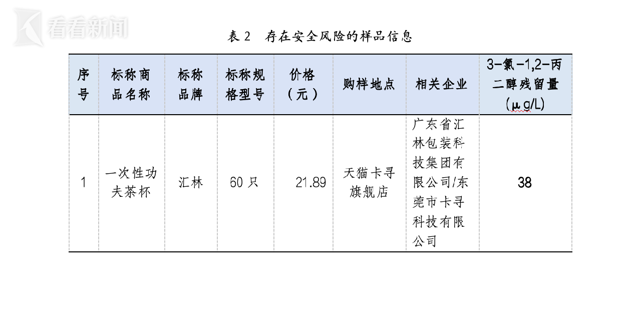 1、铅、砷等重金属含量、荧光性物质、特定迁移总量及邻苯二甲酸酯迁移量等均未检出,符合国家标准要求。1款纸杯的3-氯-1,2-丙二醇残留量超出限量值三倍(GB 4806.8-2022中限量要求为12μg/L),存在安全风险。