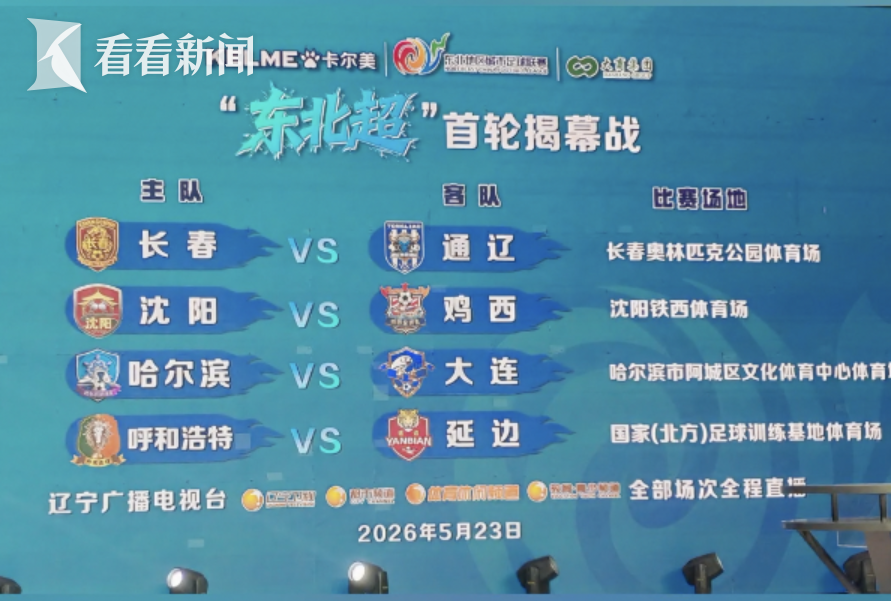 3月30日,2026“东北超”抽签仪式在沈阳举行。经过抽签,8支参赛球队各自落位,5月23日首轮对阵也正式出炉。根据规则,首轮比赛对阵为长春VS通辽、沈阳VS鸡西、哈尔滨VS大连、呼和浩特VS延边。