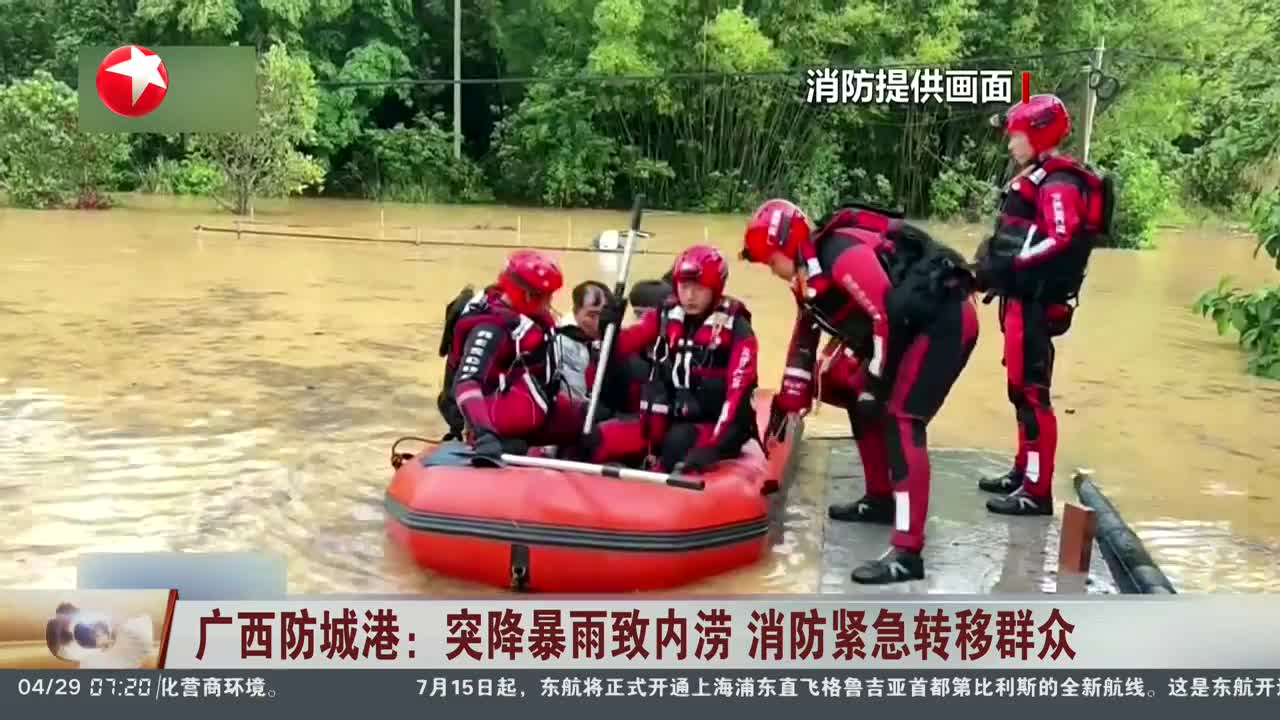广西防城港:突降暴雨致内涝 消防紧急转移群众