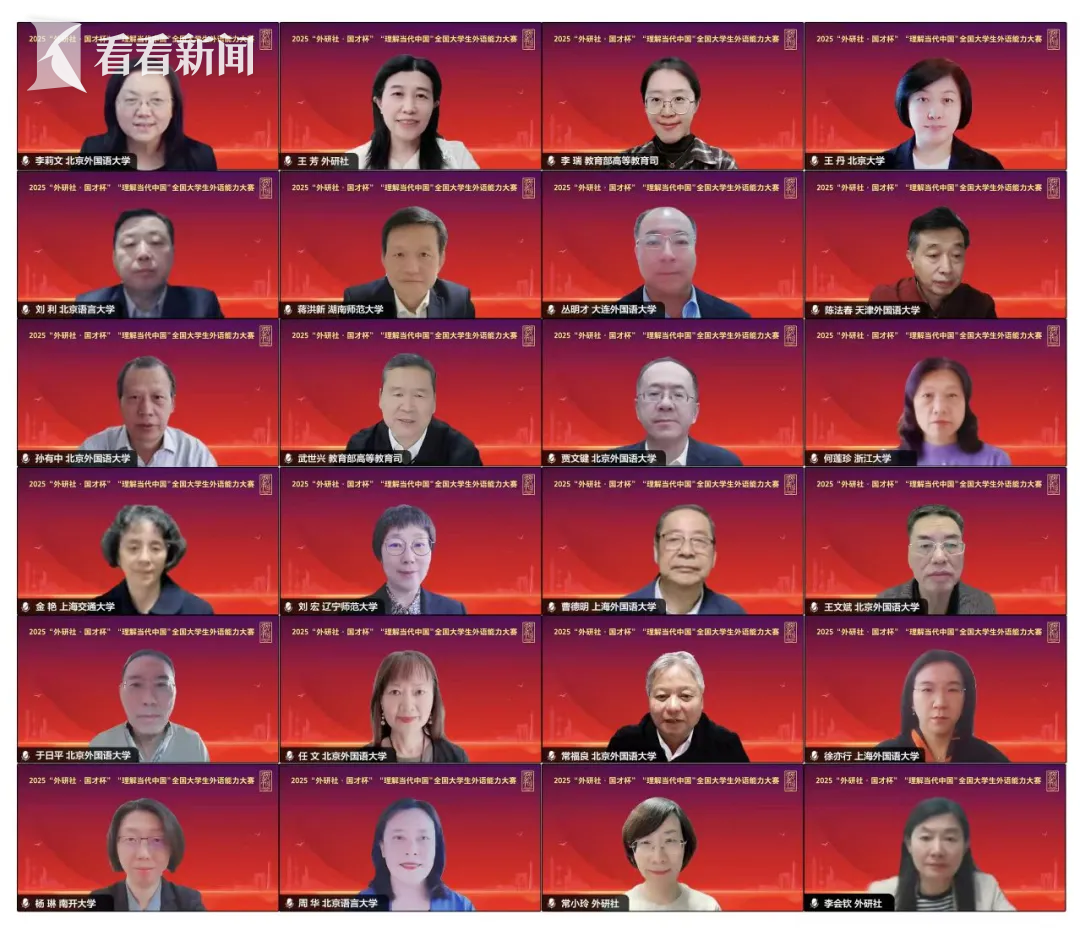 11月21日,2025“外研社·国才杯”“理解当代中国”全国大学生外语能力大赛国赛在线上开幕。教育部高等教育司相关负责同志,各省、自治区、直辖市教育厅(教委)及新疆生产建设兵团教育局相关负责同志,大赛组委会成员,各地外语教学指导委员会、外语教学研究会等机构相关负责同志,大赛国赛选手及指导教师等在线见证大赛开幕。