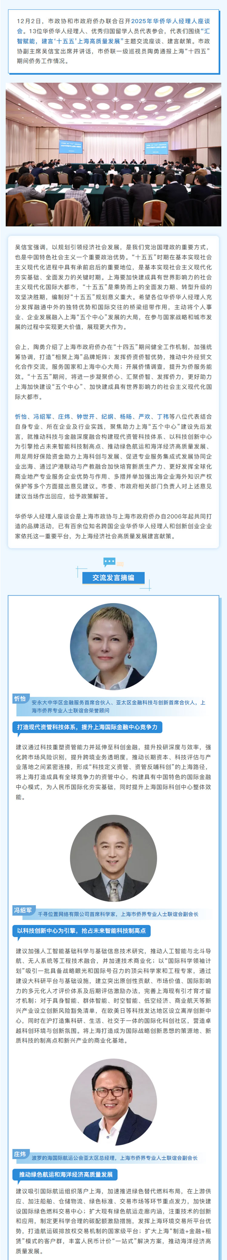 建言“十五五”上海高质量发展,这8位华侨华人经理人献计→
