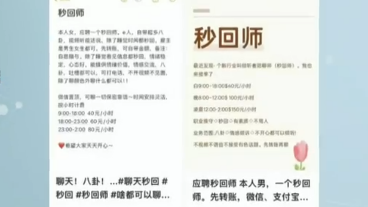 于是,秒回师这门生意应运而生。日间陪伴,大约每小时20元 ,深夜秒回的价格大约是每小时50元,有从业者说,秒回师既是客户的情绪垃圾桶,又可以提供建议。