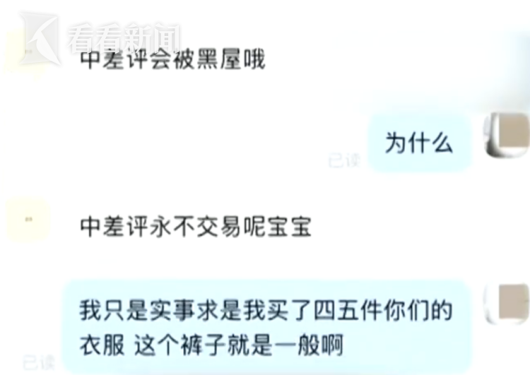 近日,有消费者反映,在电商平台购买79元的牛仔裤并给出“中评”后,被店铺直接拉黑、禁止再次下单。涉事店铺明确表示,“中差评永不交易”,并将此写入主页说明,引发广泛关注。