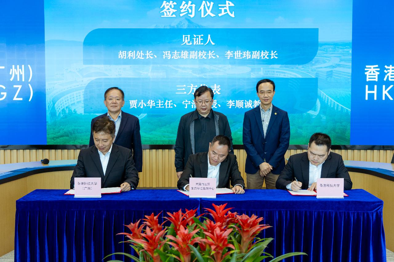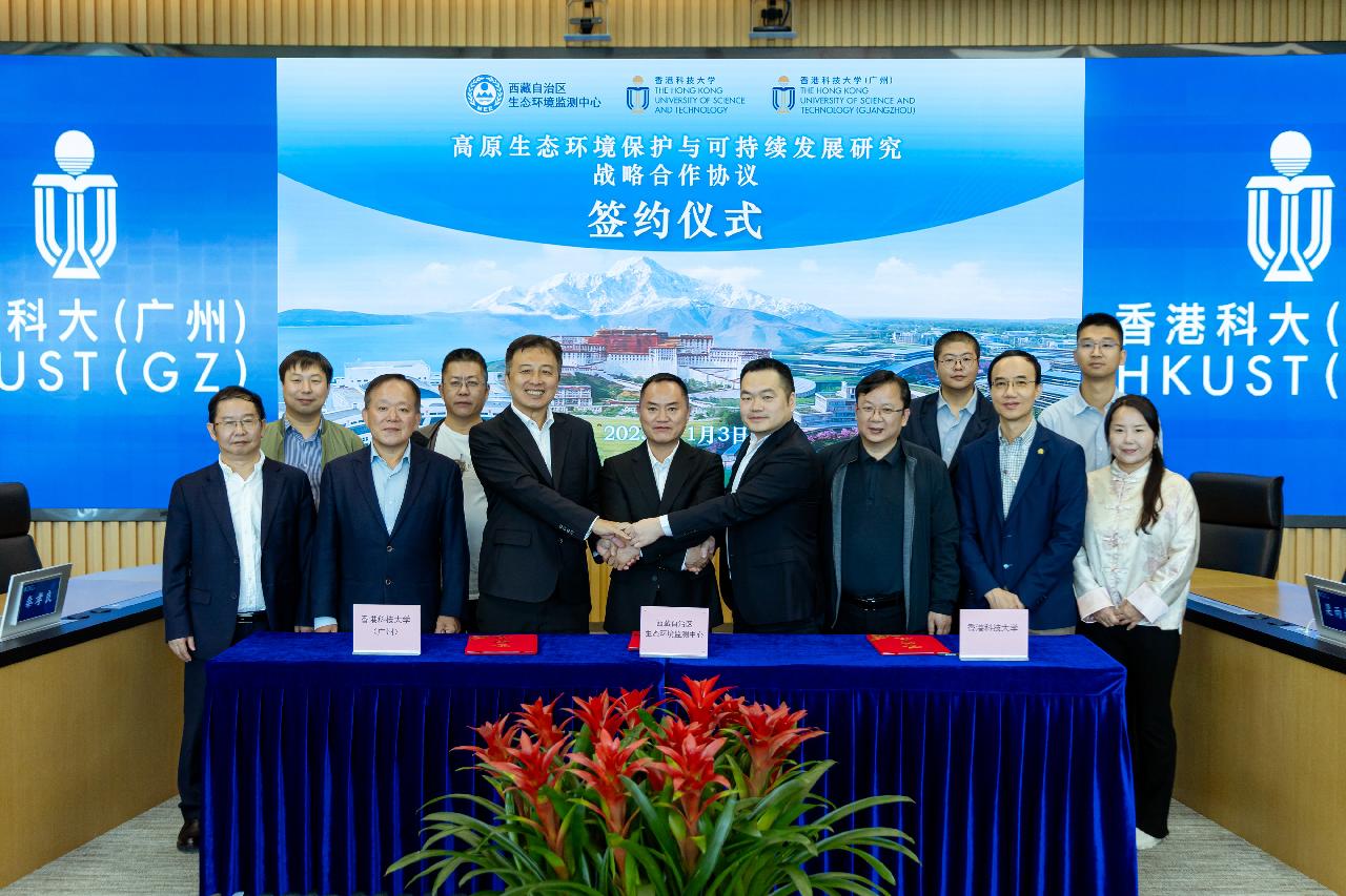 正值全国上下学习贯彻二十届四中全会精神之际,香港科技大学、香港科技大学(广州)与西藏自治区生态环境监测中心于2025年11月3日在港科大(广州)行政楼共同签署了“高原生态环境保护与可持续发展研究”三方战略合作协议。三方协议旨在贯彻落实习近平生态文明思想和习近平总书记2025年视察西藏期间对西藏生态环境保护工作的重要指示,搭建粤港藏三地协同创新的科技平台,聚焦西藏生态环境保护,实现跨区域、多维度的深度合作。