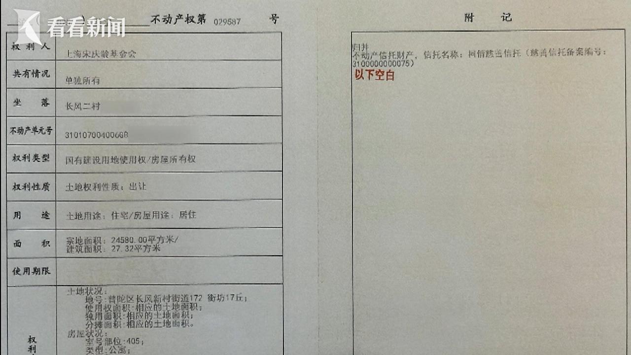 去年5月,上海开始试点开展不动产信托登记,为“房产装入慈善信托”打开了至关重要的政策窗口。基金会在“柯倩慈善信托”备案成功后,立即向相关部门提交了申请,并依法在老人的房产证上进行了“信托财产”注记,之后也将产证交由第三方托管银行保管。