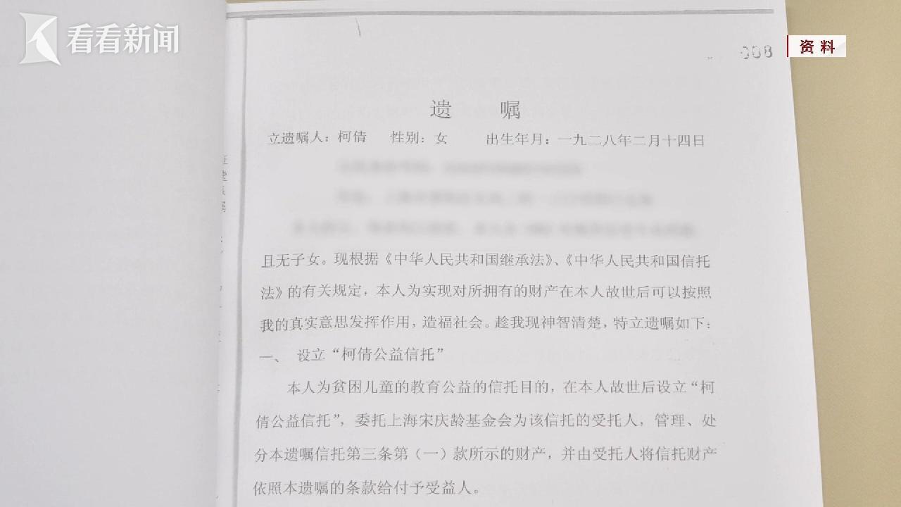 柯倩老人退休前是中福会幼儿园的教师。2010年,当时已年过八旬的她在公证处立下遗嘱,决定将唯一的房产设立公益信托,待身故后变卖,资金全部用于资助困难儿童教育事业。遗嘱中,她指定中福会幼儿园为遗嘱执行人,上海宋庆龄基金会为唯一受托人。