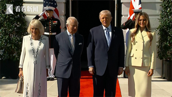 查尔斯三世夫妇抵达白宫,并参观白宫南草坪上一个外形酷似白宫的蜂箱。特朗普夫妇陪同参观,报道称英王夫妇均爱好养蜂,该蜂箱中大约栖息着7万只蜜蜂。2009年白宫设立两个蜂箱,2026年特朗普夫人设立一个新的白宫形状蜂箱。