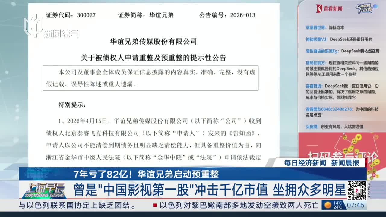 昨天,华谊兄弟因为一笔1140万元的"强制清算"上了热搜,债权人向金华市中级人民法院提起重整申请。