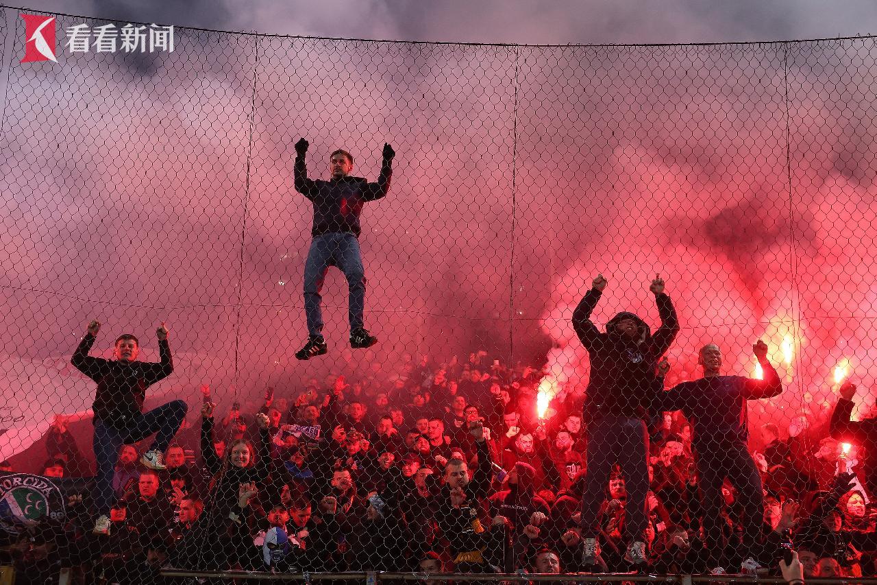 当地时间3月31日,波黑泽尼察,球迷爬上围网。