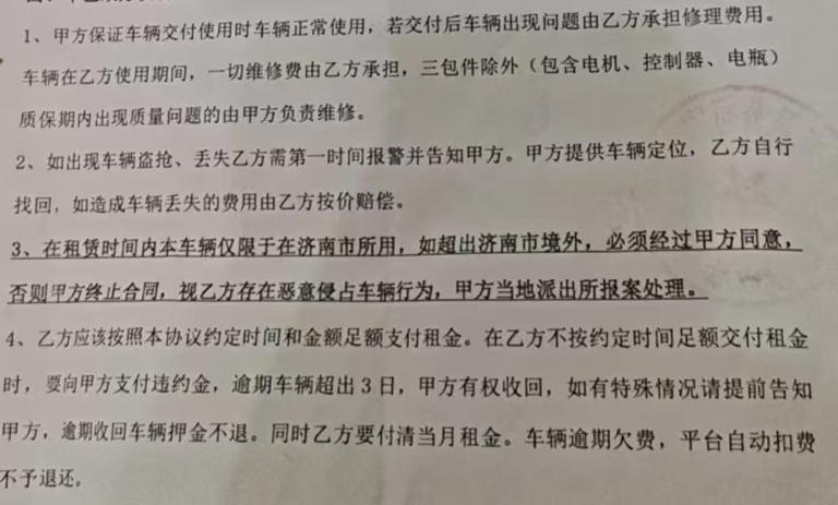 而去年12月,济南大学生冬羽抱着寒假兼职挣点零花钱的想法,也被诱导签订了租车协议。冬羽说只租一个月,但招聘方前前后后让他交了约1200元钱。签租车合同的是一家公司,签每月300元“电池费”的是另一家公司,最后还让交200元的“GPS费”。并且,求职者还得在支付宝或微信上签“快来租”“拍小租”3个月、6个月或12个月的合同。最后,经历完一套接一套的操作,才能去二手车贩子那里取车。