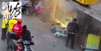 同一时间,路过的一名外卖骑手见状,立即冲进店内参与扑救,旁边奶茶店的员工也迅速拨打了119。