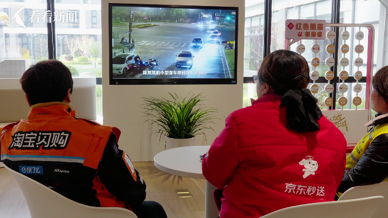 早上10点前后,对外卖骑手们来说,是介于早、中两个送餐高峰中的相对空闲期;芦潮港党群服务中心,“红橙黄”三名骑手结伴来看视频微课堂,短短15分钟,讲的是交通法规。看完一集视频,陈洪英的“先锋骑手”权益卡上,又集了一颗“小水滴”。